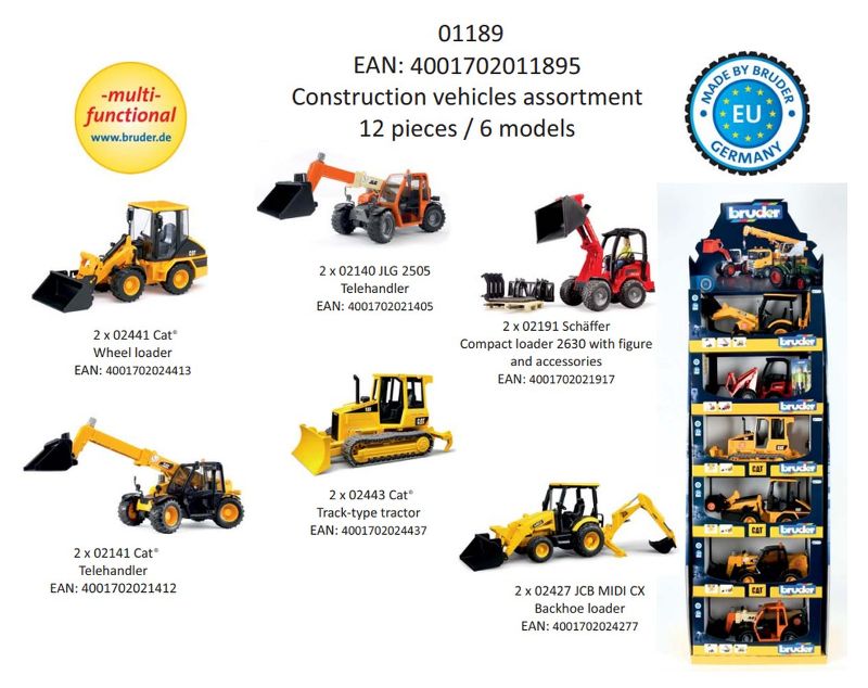 Bruder 01189 Espositore 12 Bruder 6 Modelli Ass | Catalogo prodotti | Basile Giocattoli SRL - Ingrosso di giocattoli e cartoleria a Verona