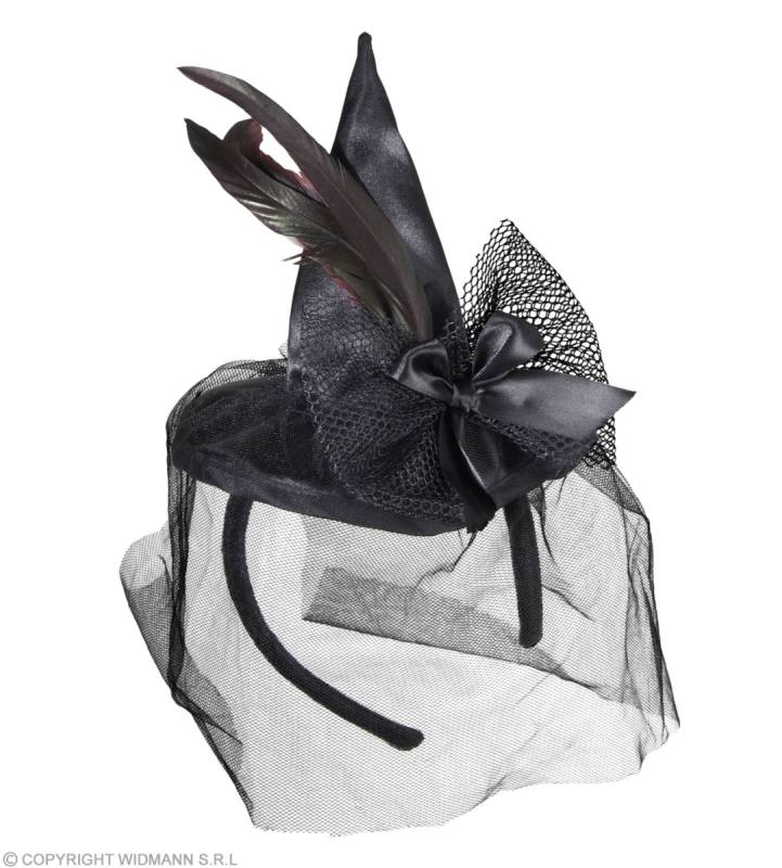 Mini Cappello Strega Con Piume E Velo