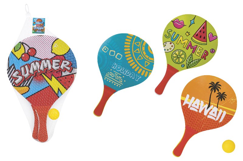 Racchettoni Spiaggia 24x38x0,8cm C/pallina 4ass