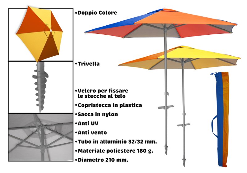 Teorema (importazione) 52179 Omb. Poly 160g Diam210cm Tubo 32/32mm Anti Uv, Antivento, Trivella, Alu Tubo | Catalogo prodotti | Basile Giocattoli SRL - Ingrosso di giocattoli e cartoleria a Verona