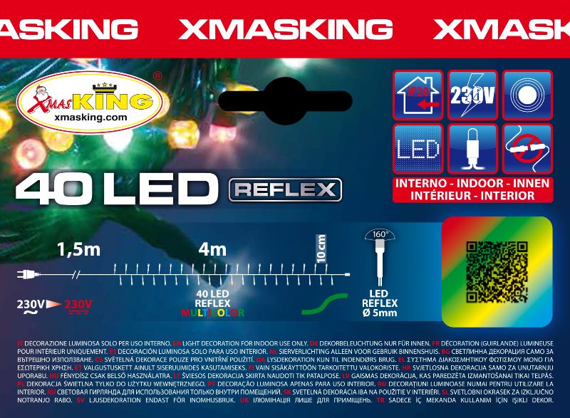 Catena Mb 40 Led Multi 5mm Luce Fissa 230v Interno Cavo Verde 1,5+4m di Lotti cod. 23352