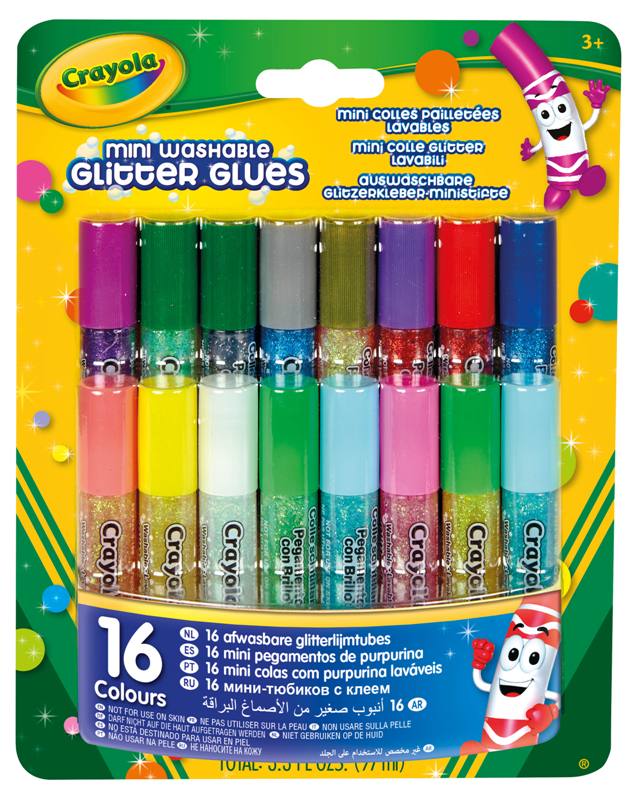 Crayola (distr. Binney & Smith) 69-4200 16 Minicolle Glitter Lavabili | Catalogo prodotti | Basile Giocattoli SRL - Ingrosso di giocattoli e cartoleria a Verona