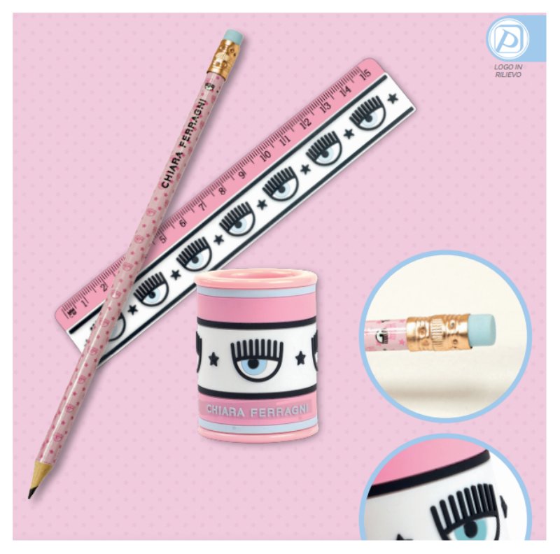 Blister Righello + Temperino + Matita Chiara Ferragni di Pigna cod. 0232154