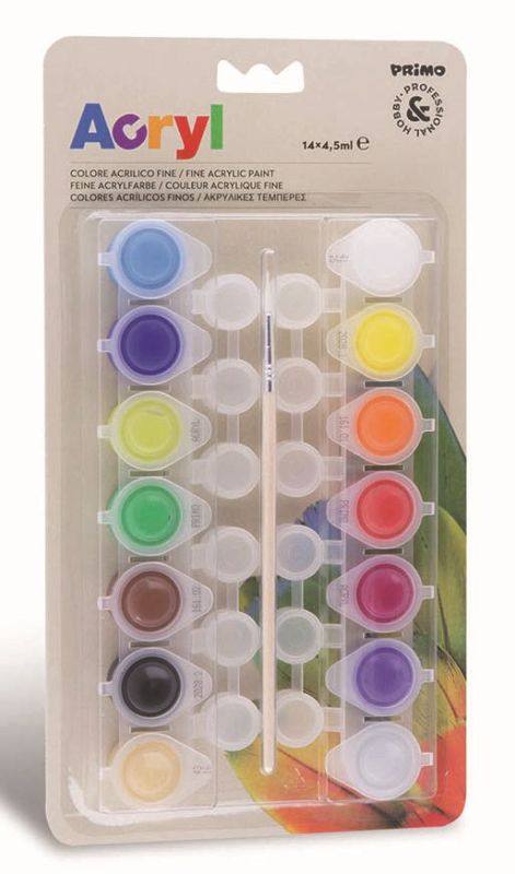 14 Colori Acrilici Fini Da 4,5 Ml In Blister Con Pennello.