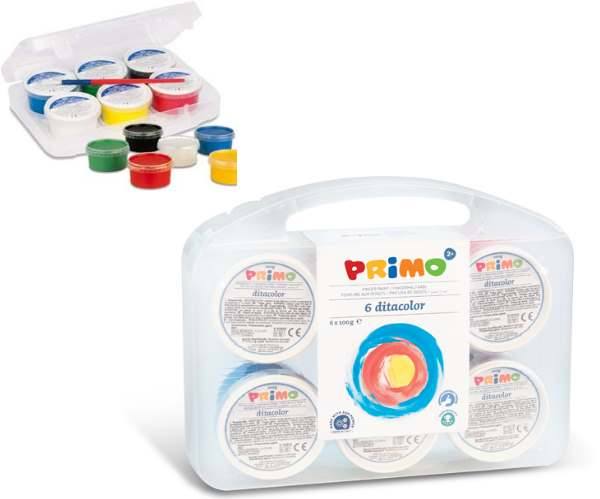 6 Colori Tempera A Dita In Vasetto Polipropilene 100g In Valigetta Multiuso
